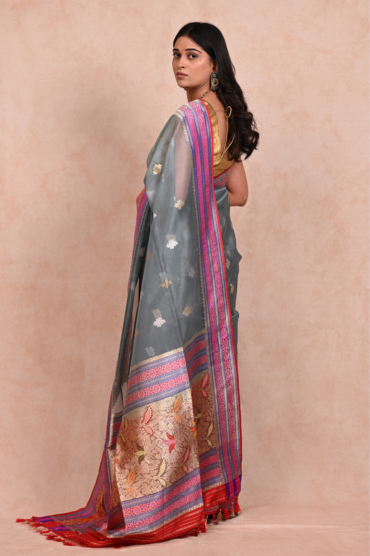 Banarasi Kora Silk Saree with Satin Border & Resham-Zari Work