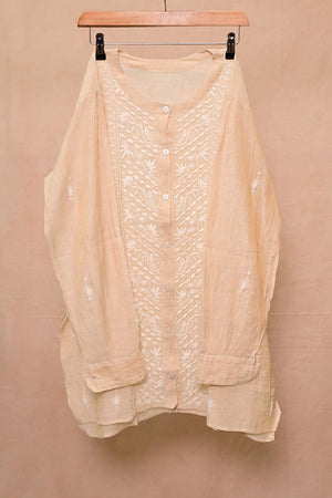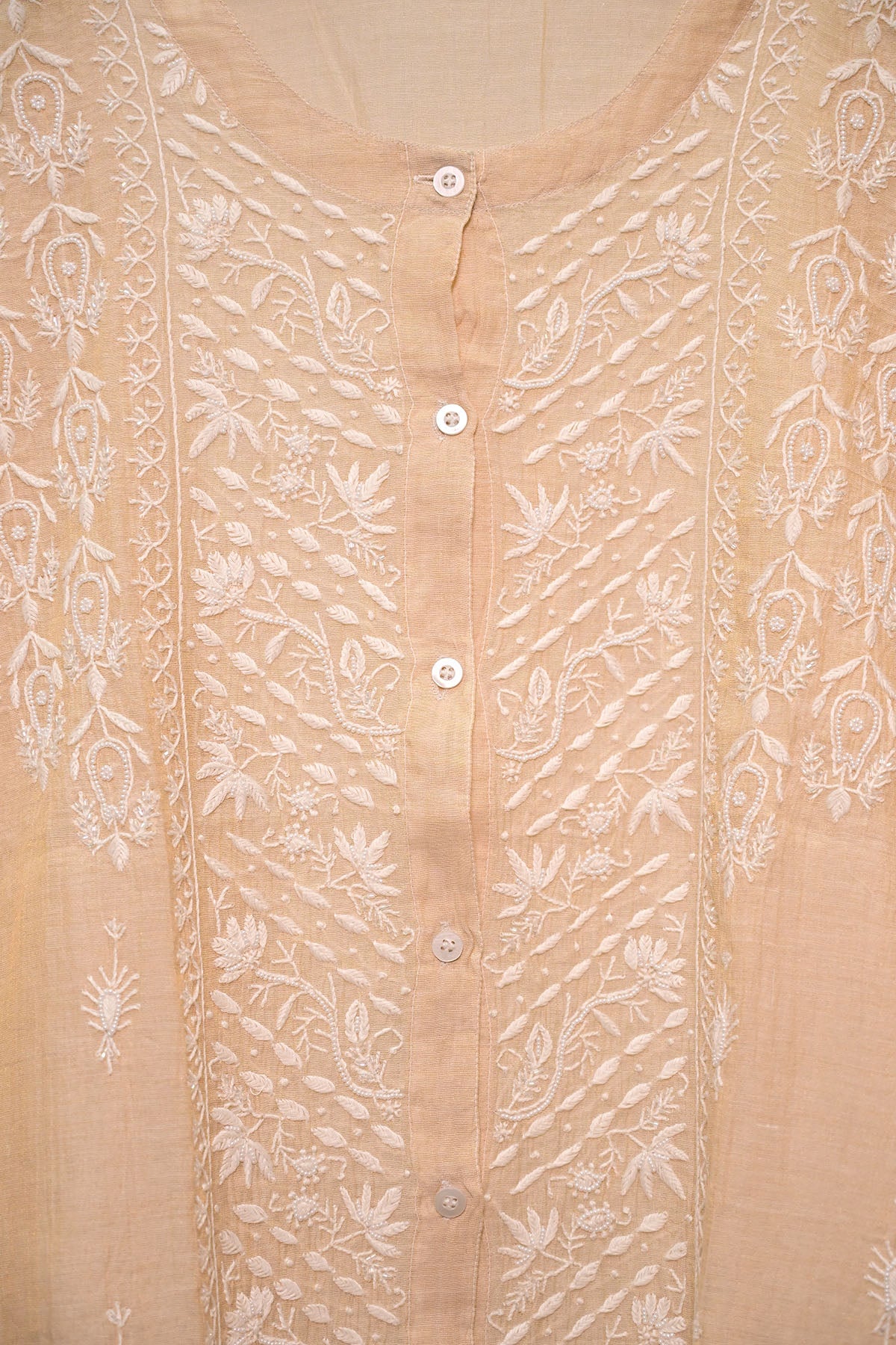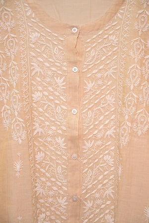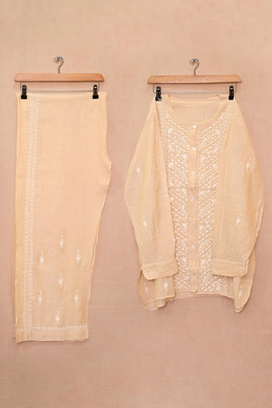 Beige Golden Tissue Chanderi Chikankari Co-ord set