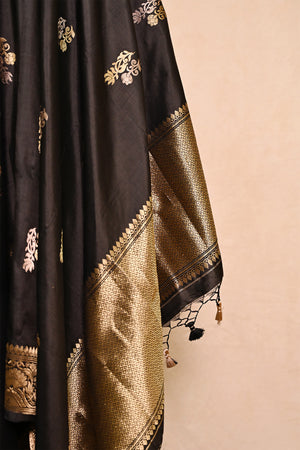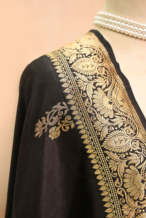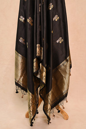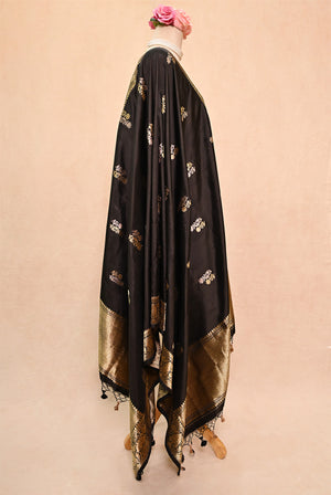 Black Katan Silk Banarasi Dupatta with Double Zari Butta