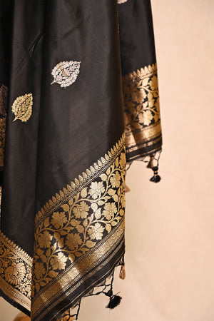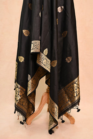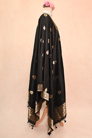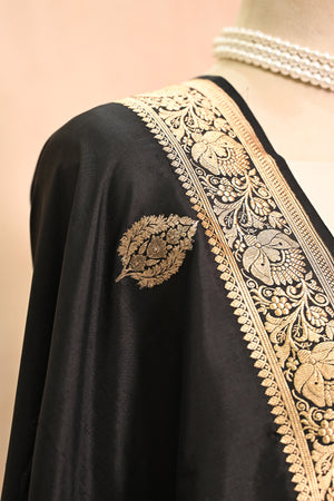 Black Katan Silk Banarasi Dupatta with Floral Border