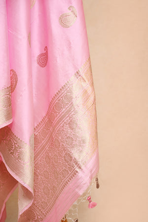 Blush Pink Katan Silk Banarasi Dupatta