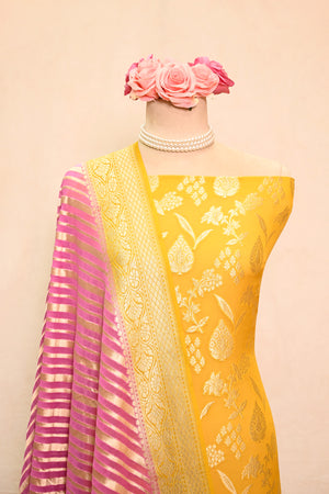 Bright Yellow Khaddi Georgette Banarasi Suit