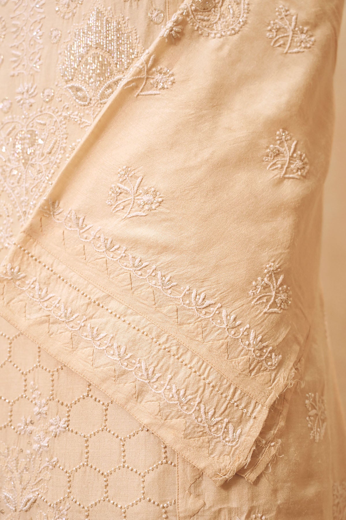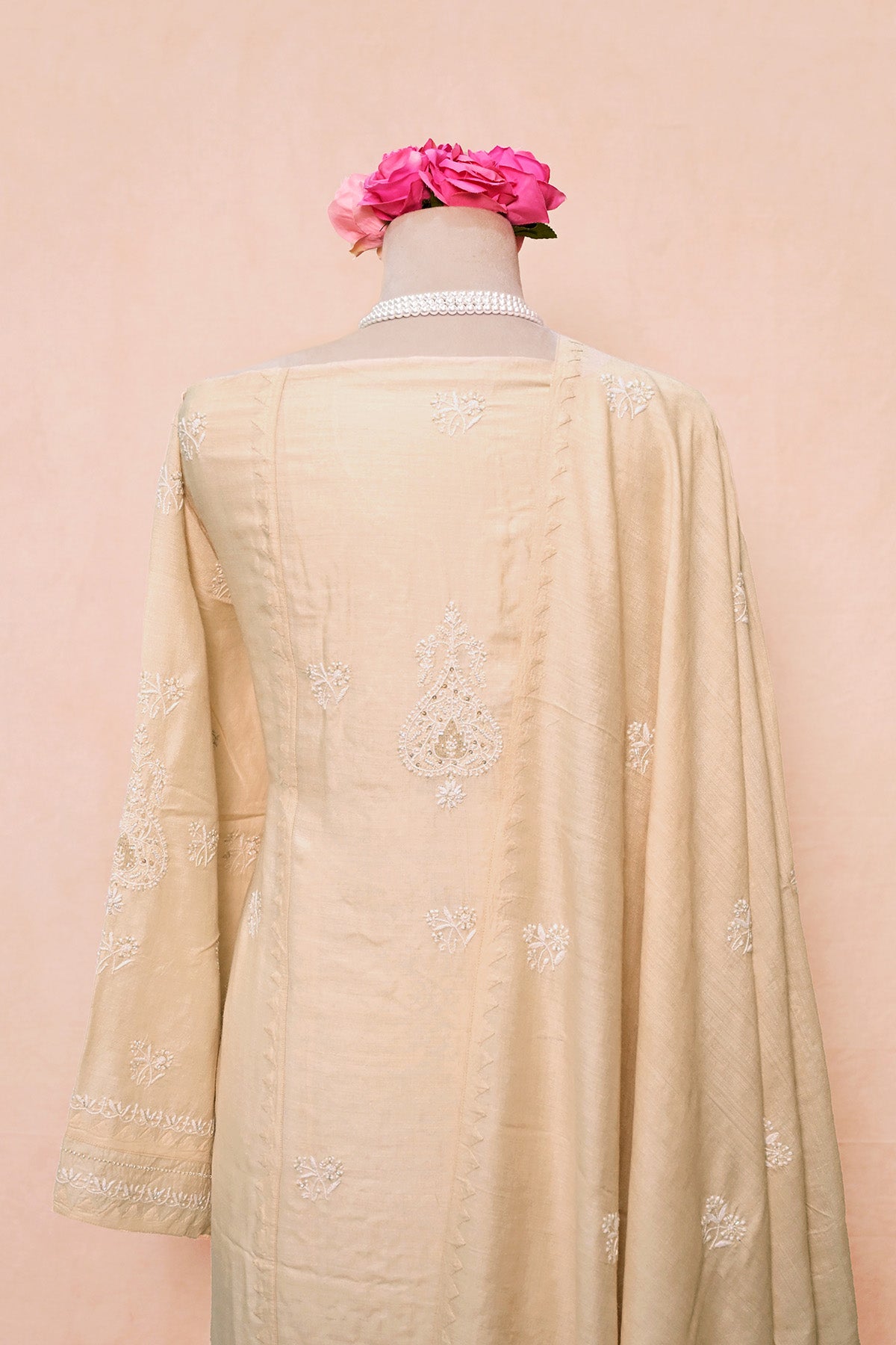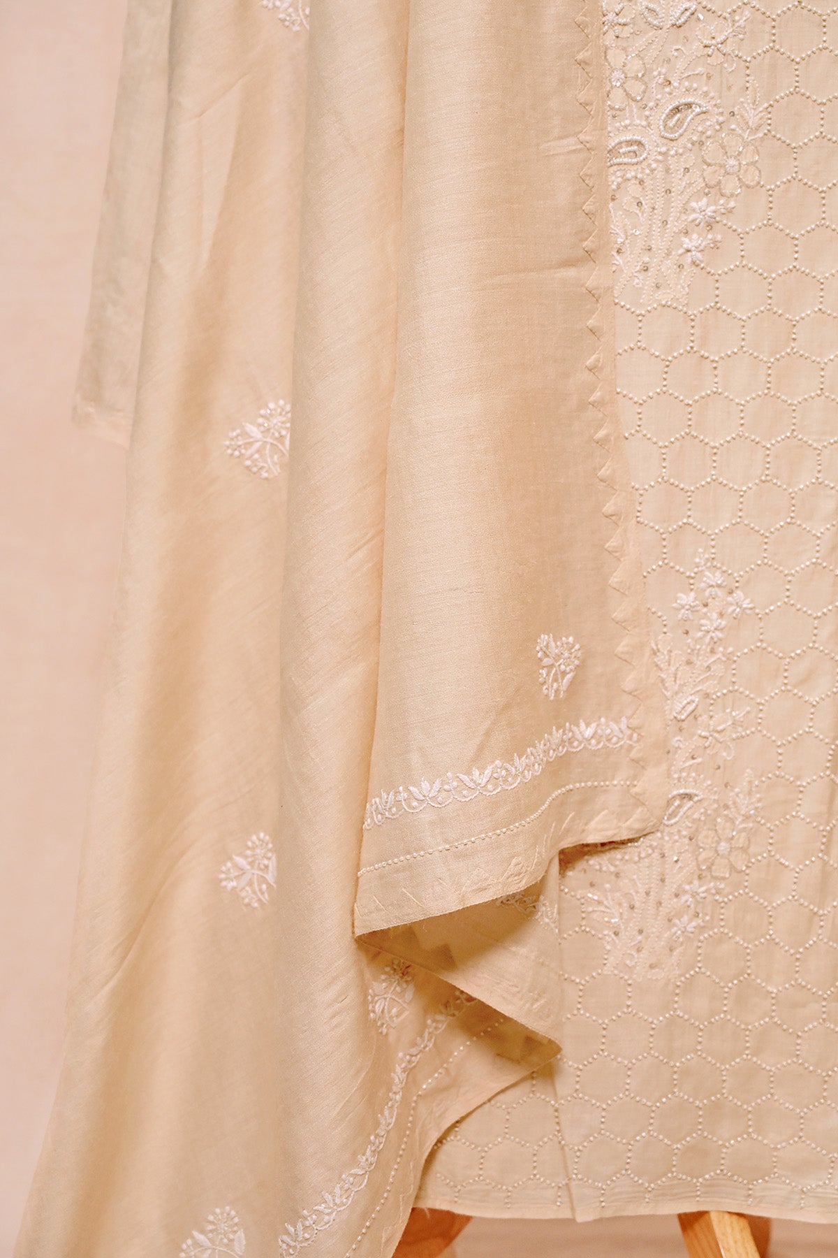 Cream Moonga Silk Chikankari Suit