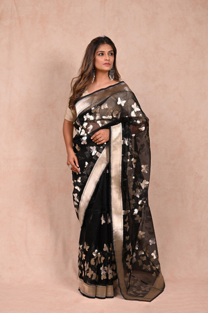 Black Organza Saree with Butterfly Zari Motifs