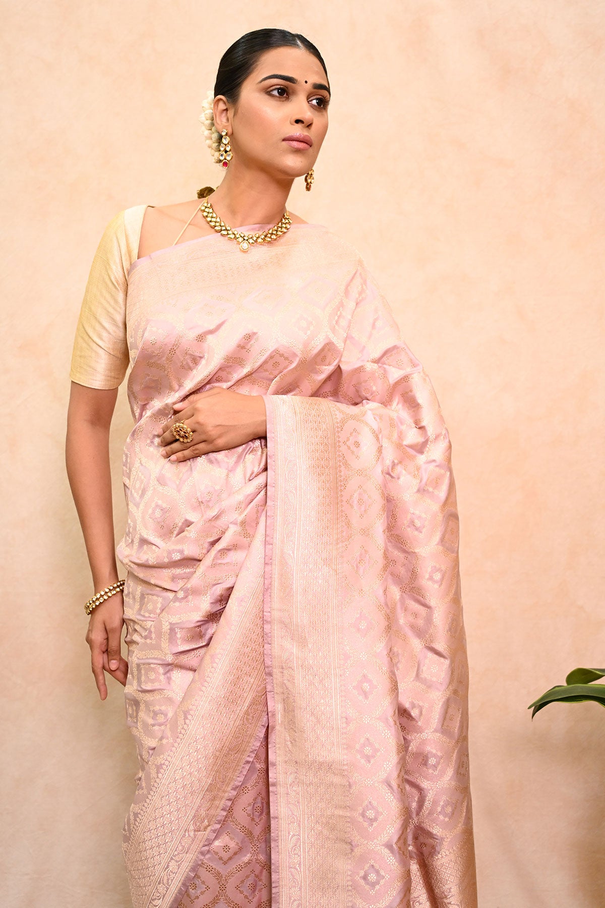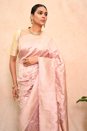 Katan Jaal Banarasi Saree with Exclusive Copper Zari & Brocade Border