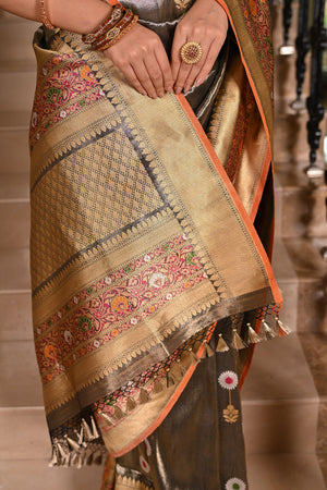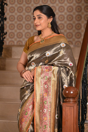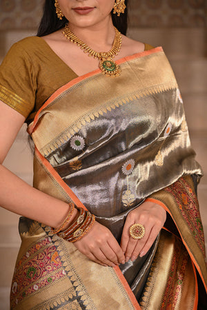 Katan Tissue Silk Banarasi Saree with Meenakari Work