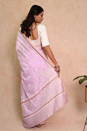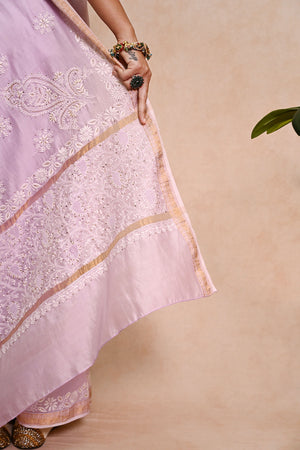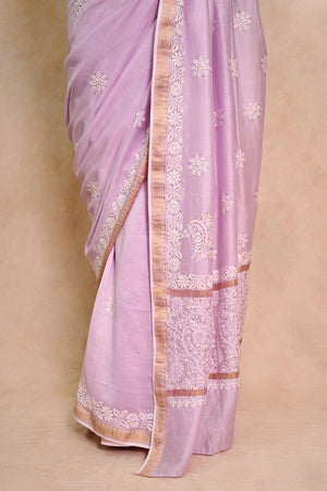 Lavender Chanderi Chikankari Saree with Zari Border