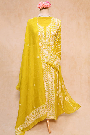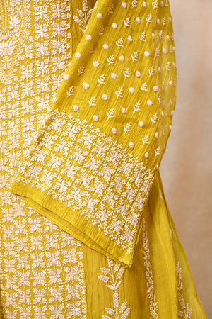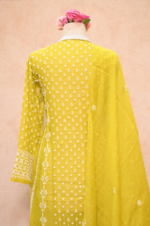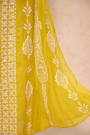 Lemon Green Soft Chanderi Chikankari Anarkali