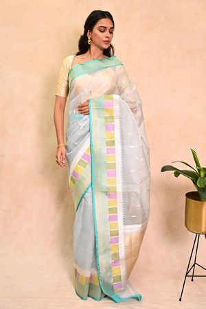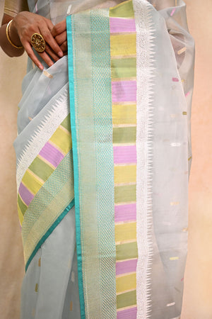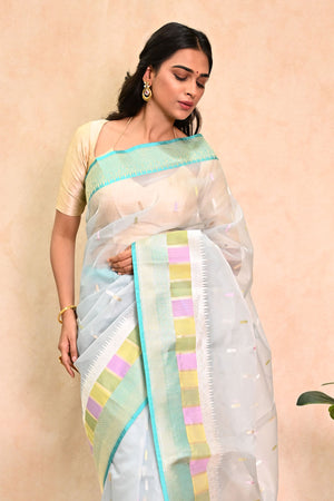Light Blue Organza Saree with Golden Zari Booti