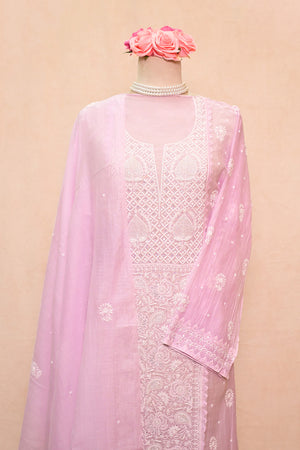 Light Lavender Chanderi Chikankari Suit