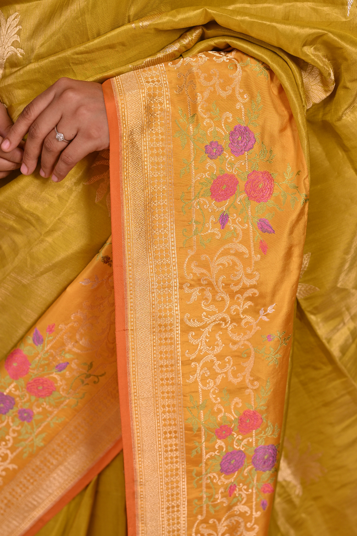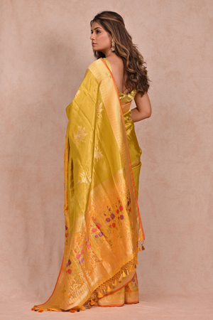 Light Mustard Tissue Silk Banarasi Saree