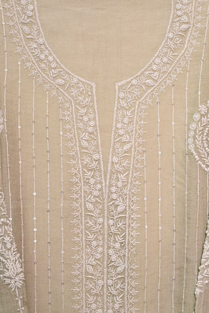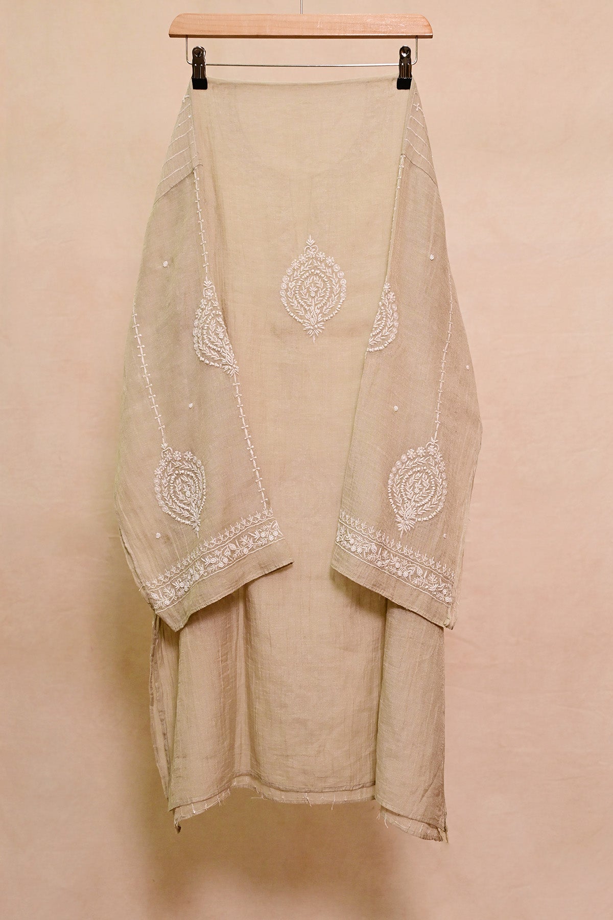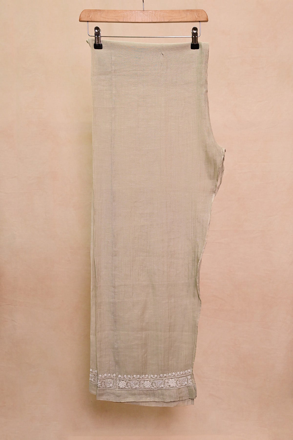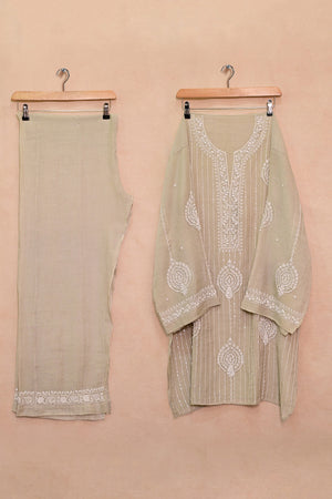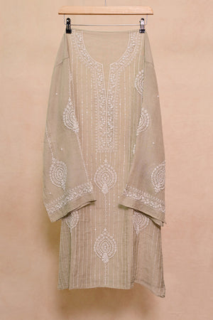 Light Olive Grey Silver Tissue Chanderi Chikankari Co-ord set
