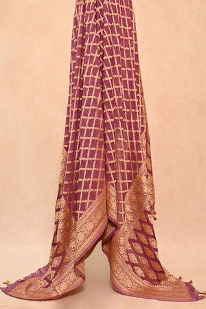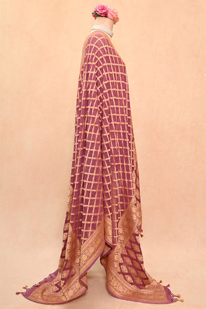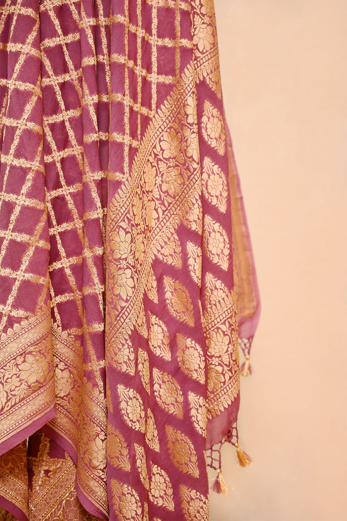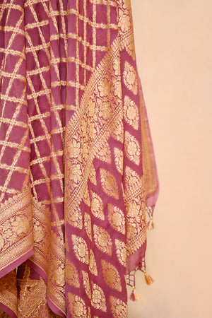 Mulberry Purple Khaddi Georgette Banarasi Dupatta