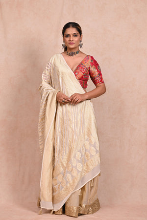 Off White Khaddi Georgette Banarasi Dupatta
