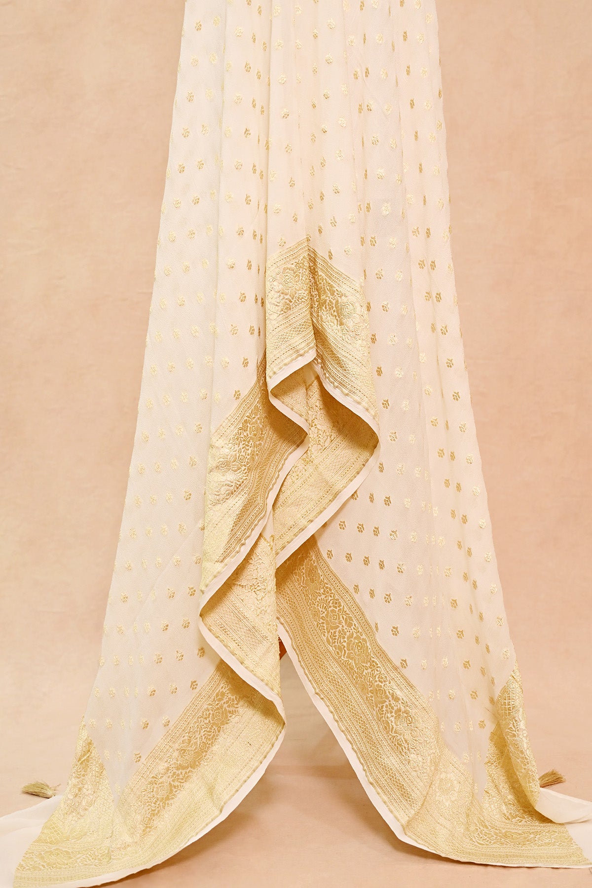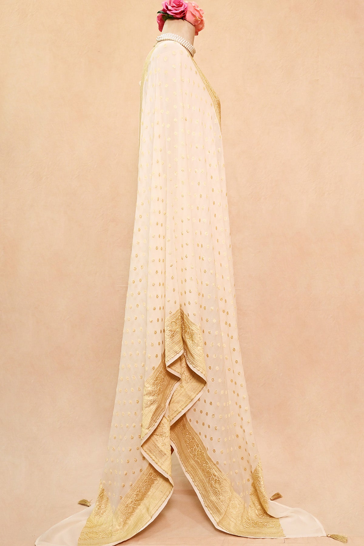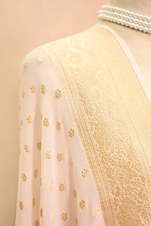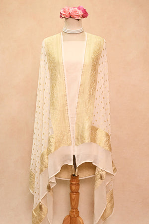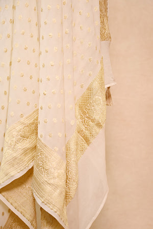Off White Khaddi Georgette Banarasi Dupatta with Floral Buti