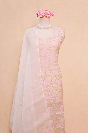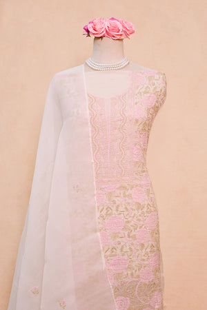 Off White Organza Chikankari Suit