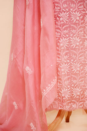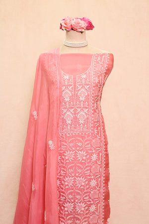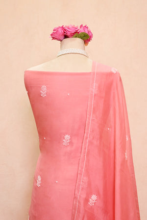 Pink Organza Chikankari Suit