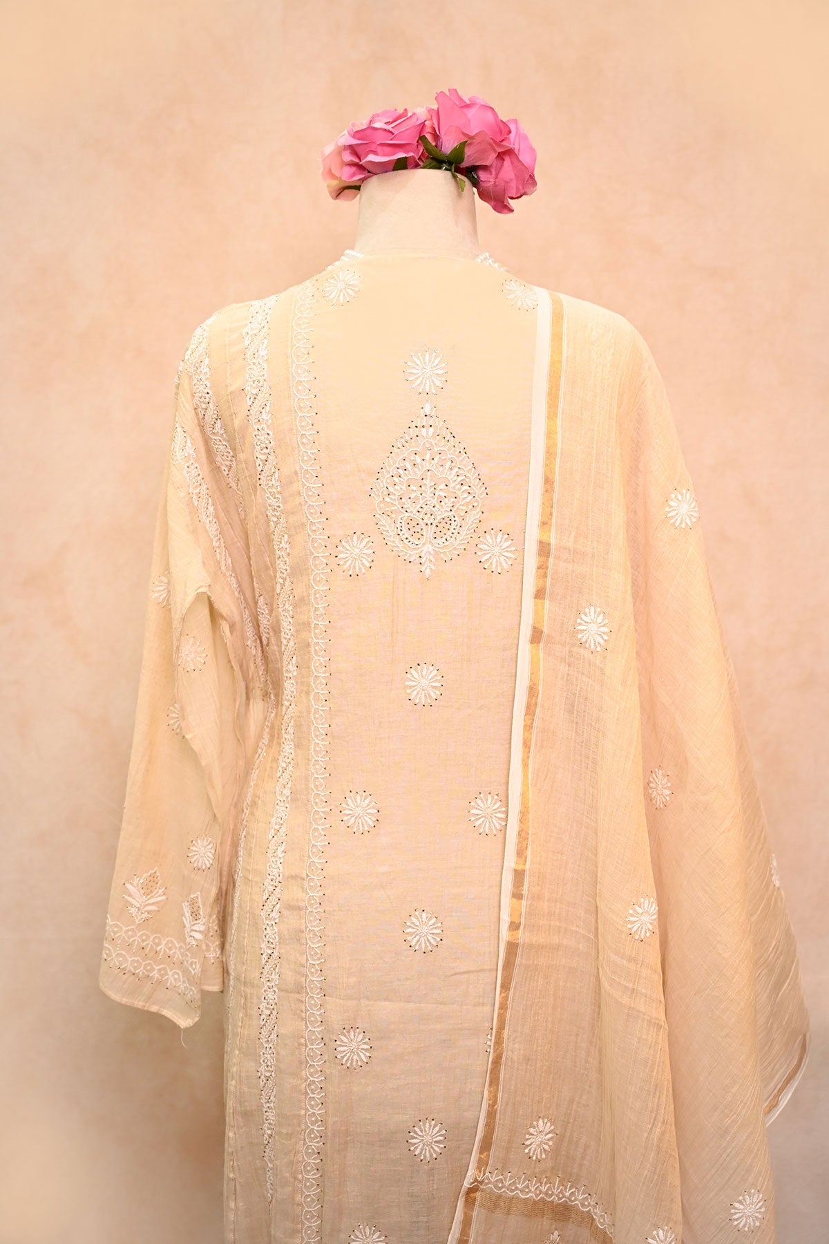 Pure Tissue Chanderi Chikankari Anarkali