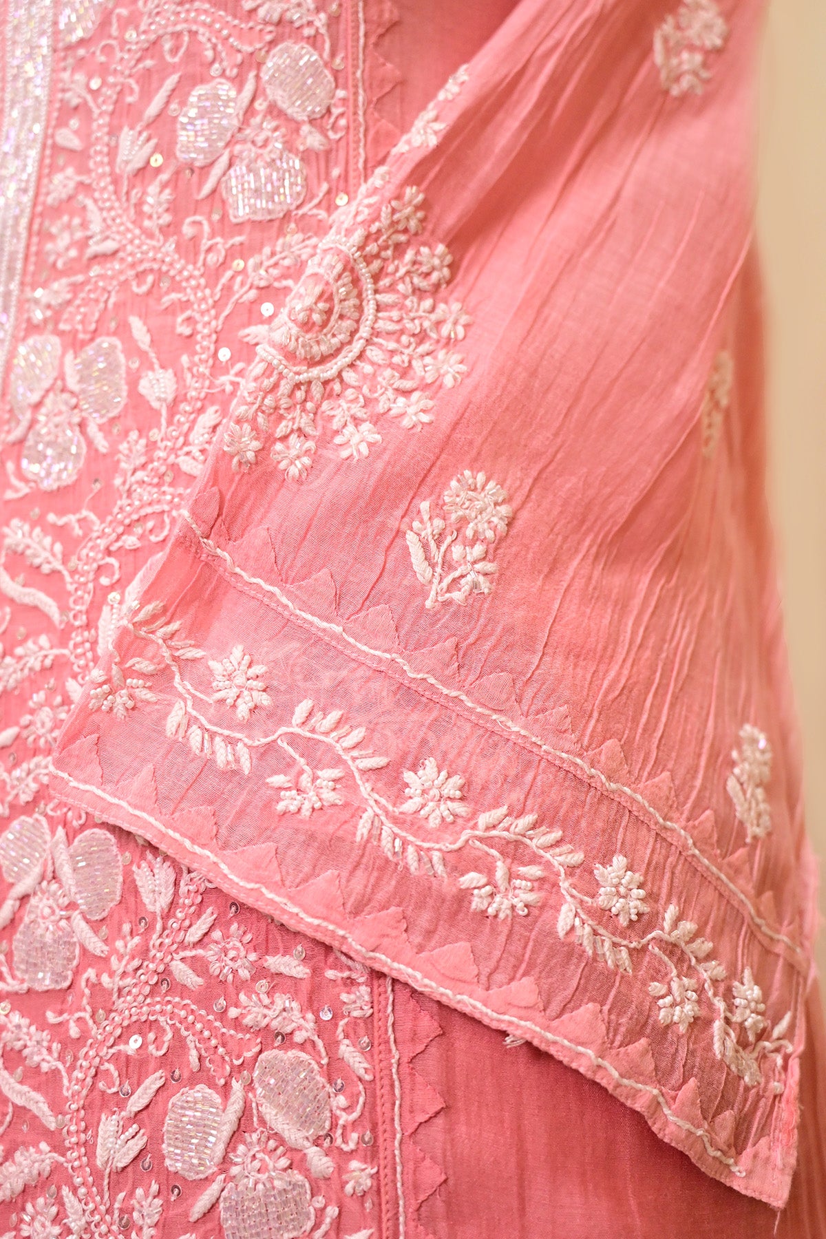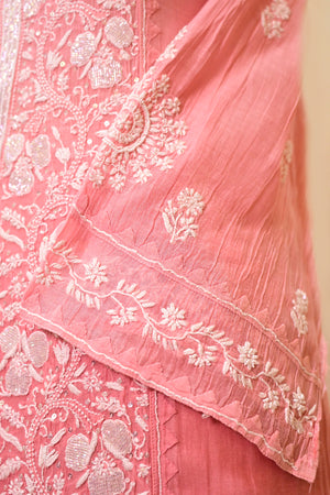 Rosewood Ombre Chanderi Chikankari Suit