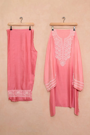 Rosewood Ombre Soft Silk Chikankari Co-ord set