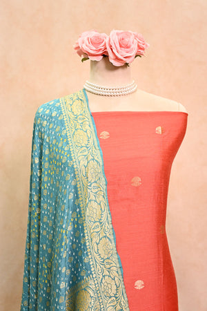 Rust Red Banarasi Moonga Silk Suit