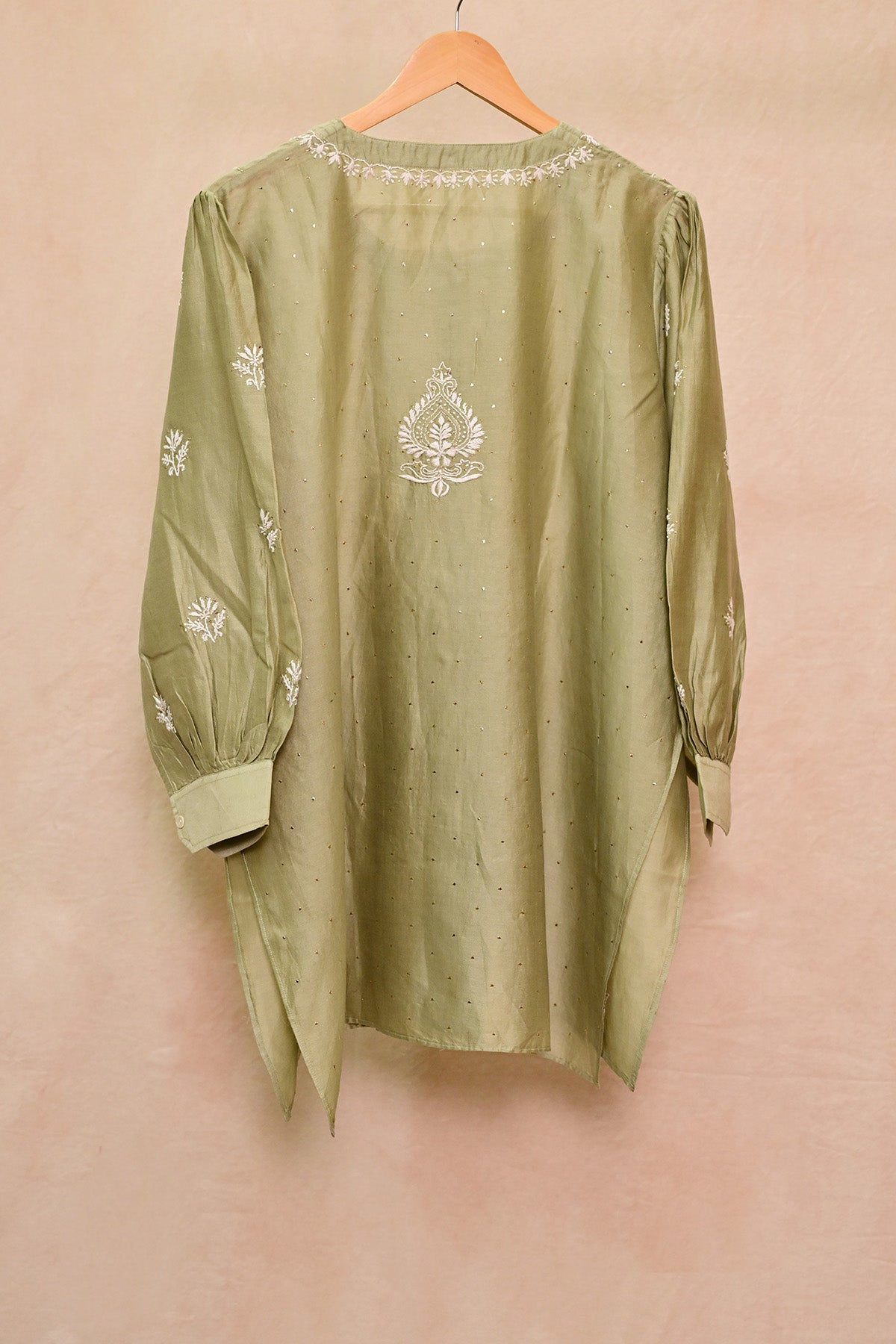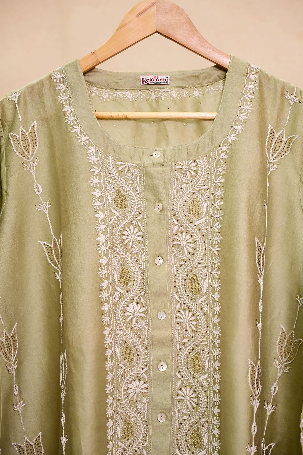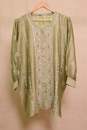 Sage Green Chanderi Chikankari Co-ord set