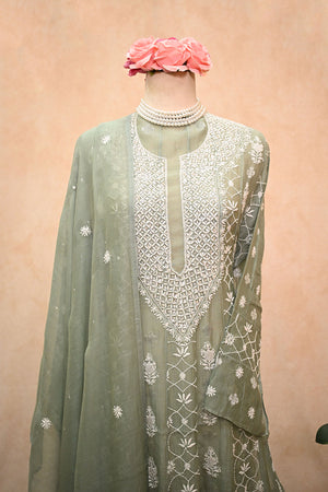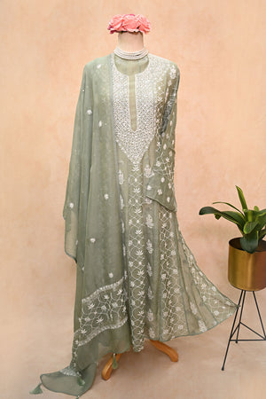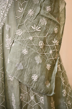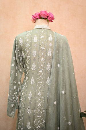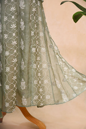 Sea Green soft Chanderi Chikankari Anarkali