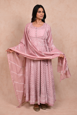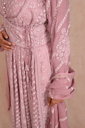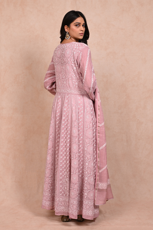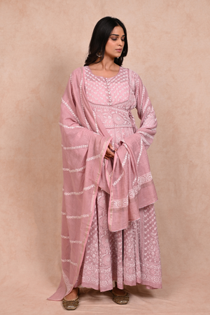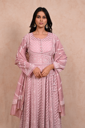 Silver Tissue Chanderi Chikankari Anarkali