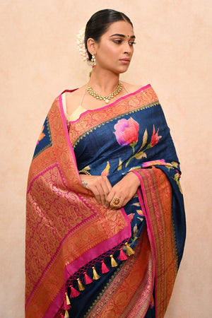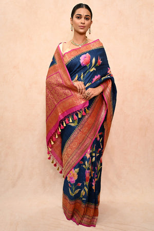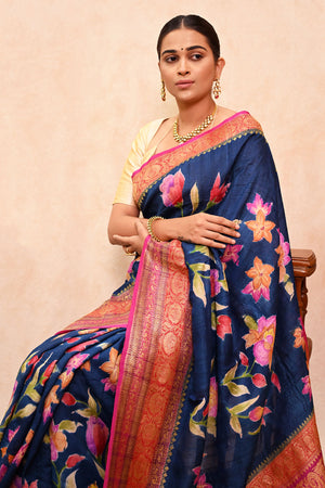 Tussar Georgette Banarasi Saree with Hand Brush Dye