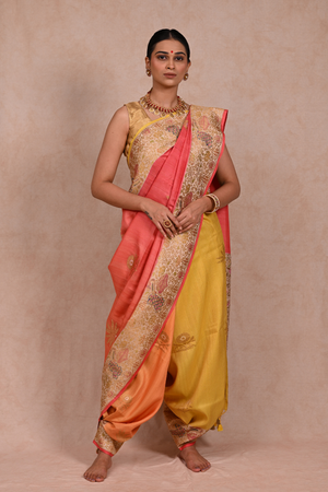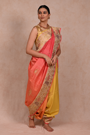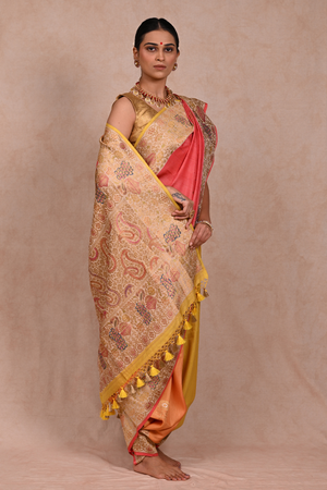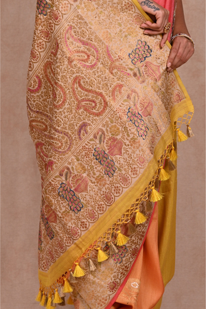 Tussar Georgette Banarasi Saree with Khaddi Nakshi & Gold Zari Peacock Motifs