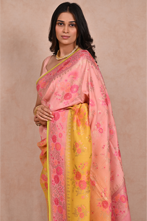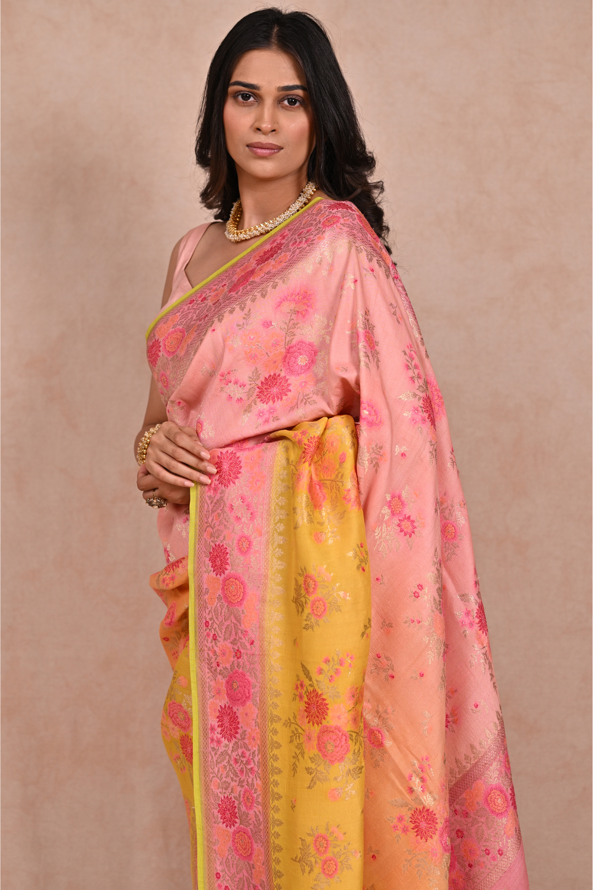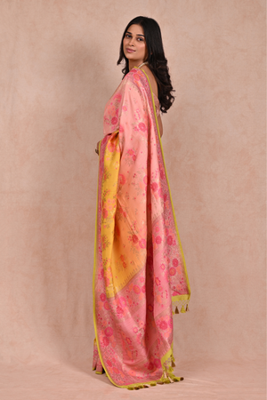 Tussar Georgette Banarasi Saree with Multicolor Resham Floral Work & Ombre Dye